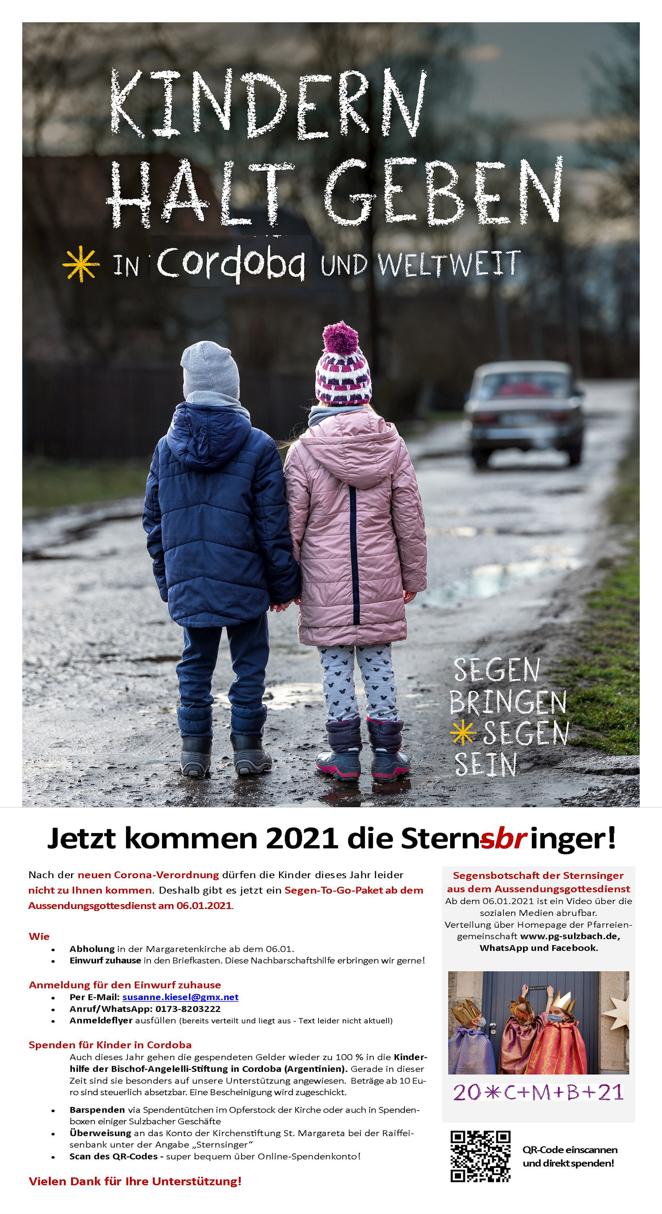 - Überweisung an das Konto der Kirchenstiftung St. Margareta bei der Raiffeisenbank unter der Angabe "Sternsinger"