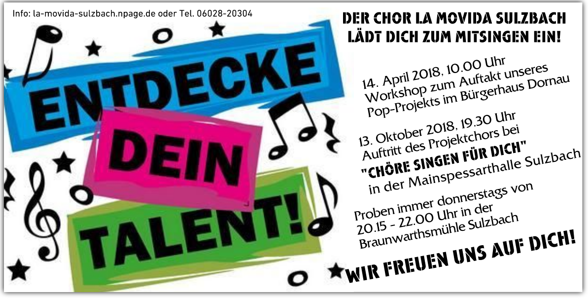 Der Chor La Movida Sulzbach lädt dich zum Mitsingen ein!