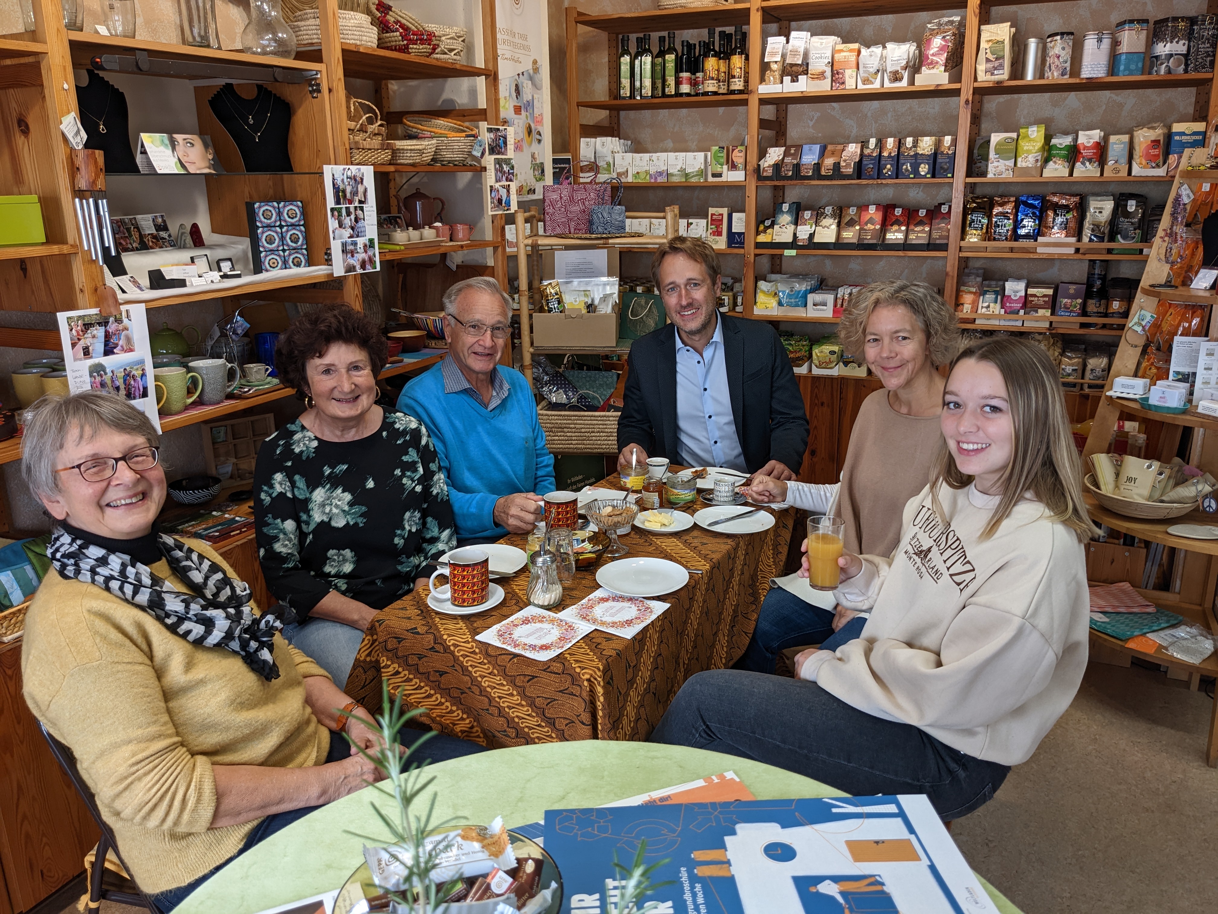 Bei fair gehandeltem Kaffee und leckerem Apfel Mango Saft lies es sich der 1. Bürgermeister Martin Stock nicht nehmen, dem Weltladen einen kleinen Besuch abzustatten.